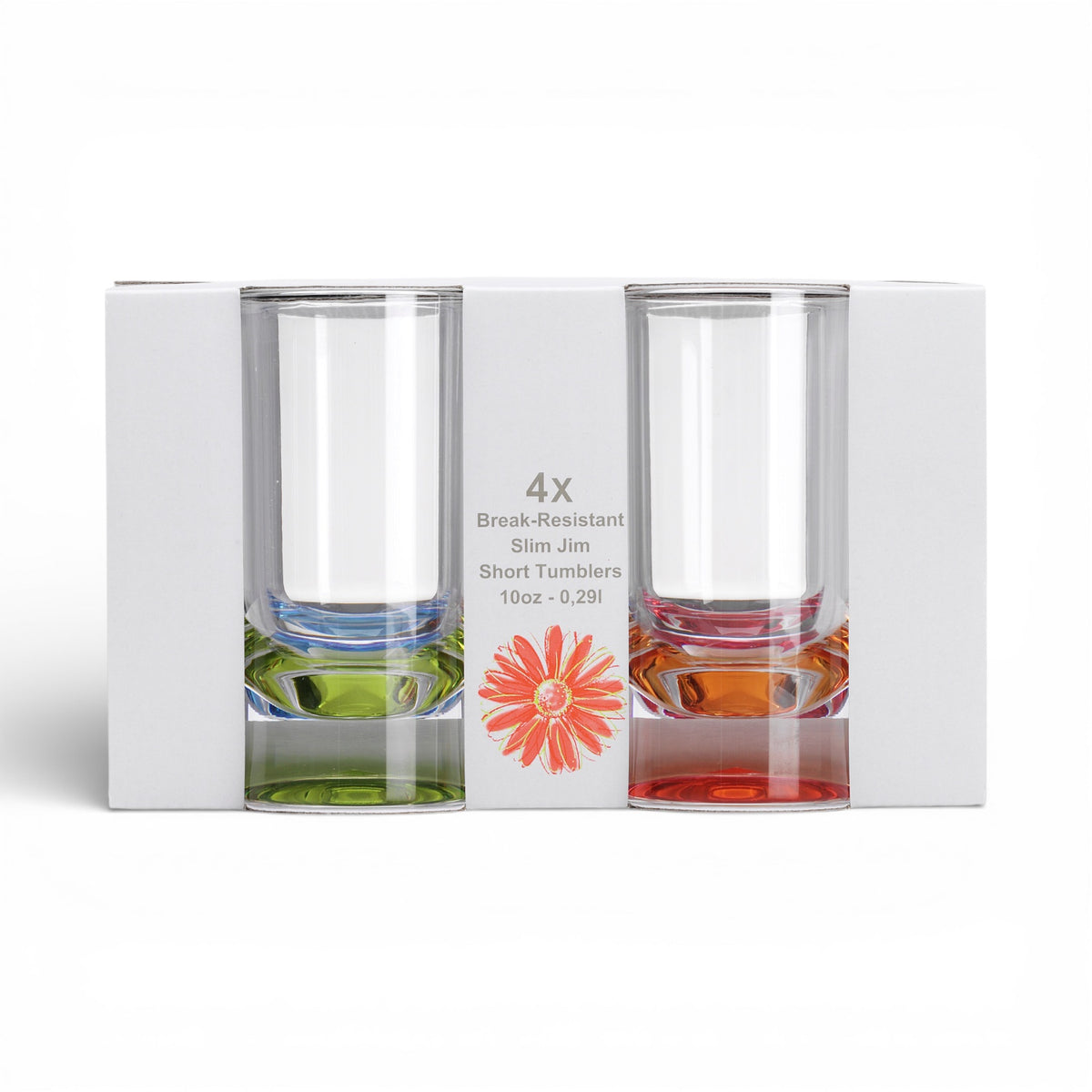 Flamefield longdrinkglas Party Slim Jim Short 320 ml (set van 4) – met gekleurde bodem