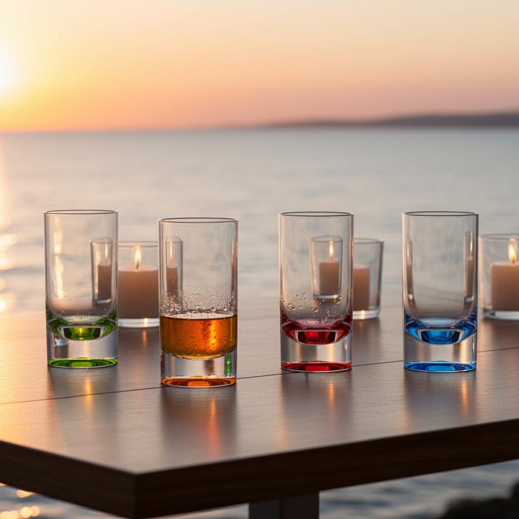 Ja, de bodem van elk glas heeft een andere kleur – handig én feestelijk!