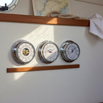 De A80-serie herken je meteen aan het frisse nautische design: blauw/rode wijzers, tweekleurige print en het subtiele druppelsymbool. De behuizing is gemaakt van gepolijst 18/10 RVS (AISI 304L) en het front is PMMA (acrylglas): helder zicht en lekker sterk in dagelijks gebruik. Monteren gaat strak en simpel met de meegeleverde quick-lock montagering, zodat hij netjes hangt zonder gedoe.